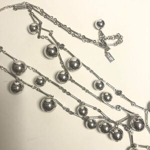 298 Kate Spade New York Silver Tone Necklace Dangle Ball Crystal layer 26”-28”