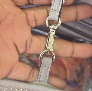 The $298 Michael Kors Signature Jetset Center Tote Handbag is a rare and stylish leather tote designed for women. The handbag features a striped pattern in pearl gray, making it a chic and versatile option for travel occasions. With its small size and practical tote style, this Michael Kors handbag combines fashion and functionality, perfect for any woman on the go.