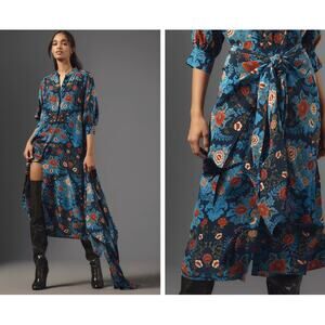 Tags: FARM RIO Anthropologie Anthro Blue Red Floral Dress Midi Dress Pair with Boots and a Coat Winter NYE Party Christmas Holiday Cocktail Dress Gift Present M Medium 4 6 8 10 NWT NEW