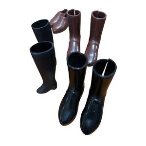 This collection showcases a variety of 29 pairs of shoes for Barbie and Ken dolls, featuring different styles and colors. These shoes enhance imaginative play while providing a stylish touch to any doll's wardrobe. Suitable for collectors or children who enjoy creating diverse outfits for their dolls. 4 pairs marked with Barbie Logo, others unmarked.