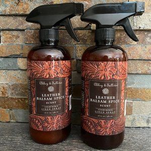 (2)-Abbey & Sullivan-LEATHER BALSAM SPICE-Luxury Room & Linen Spray Pump-L 16 oz each.