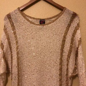 2B BY BEBE HIGH LOW GOLD SEQUIN SWEATER SIZE XS
