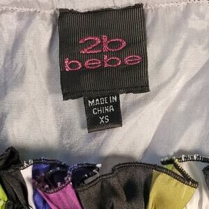 2B Bebe Graphic Neon Ruffle Strapless Mini Dress XS Y2K Bright Party Cute Fun