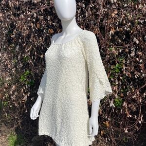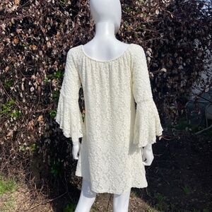 2B Together Cream Lace Overlay Mini Bell Sleeve A-Line Dress