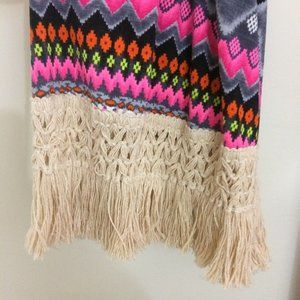 2B Together Crochet Fringed Bell Sleeve Tunic Dress Aztec Boho Tribal Size Large