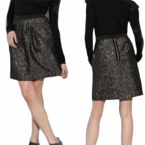2B.RYCH Womens Skirt SZ 6 Black Gold Metallic Swirl Pleated Lined Knee Zipper