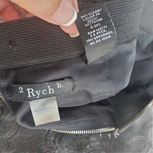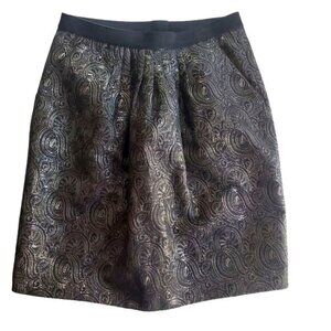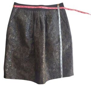 2B.RYCH Womens Skirt SZ 6 Black Gold Metallic Swirl Pleated Lined Knee Zipper