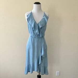 2Bella Blue Ruffled Edge Tencel Knee Length Dress Size Medium