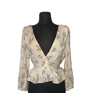 2Bella Long Sleeve V Neck Ruffle Blouse| Large