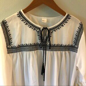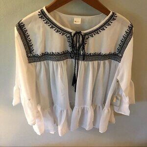 2CHIC white black embroidered Arabella ruffle peasant blouse top with tassel drawstrings in ONE SIZE fits most.