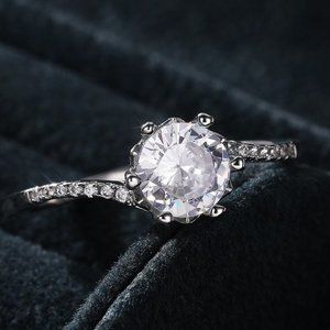 😍2CT MOISSANITE SILVER ROUND TWISTED BIG FLOWER SOLITAIRE ENGAGEMENT RING, K758
