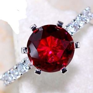 2CT Natural Ruby & Topaz 925 Sterling Silver ~ Non Tarnish Silver Ring ~ Size 6 ~ This ring comes gift boxed.