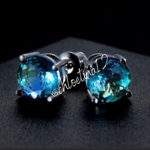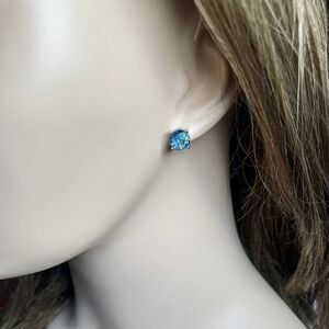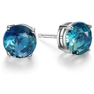 2 Carat Blue Tourmaline Sterling Silver Stud Earrings