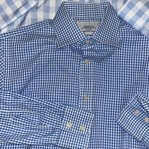 2-Charles Tyrwhitt Blue Gingham Check Plaid French Cuff & Standard Cuff Shirt M