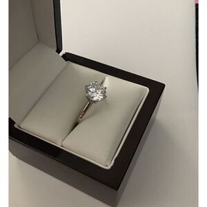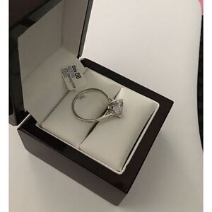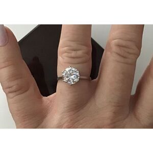 Why spend thousands when you an get the same look and high quality of flawless natural diamonds in gold? This beauty boasts a 2 carat ultra faceted hand prong set round cut solitaire in a AAA quality simulated diamond gemstone. It is hand prong set in a high basket setting. The setting and band is done in .925 solid sterling silver and is stamped for authenticity. It is size 9.