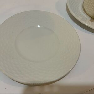 Excellent condition. 3 Cup Saucer Sets Capri Basketweave Tabletops Unlimited 518372 White Gallery G1