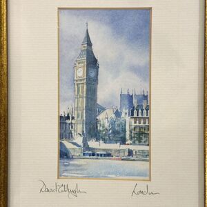 2 DAVID EDDINGTON vintage watercolour/lithograph of London Skyline Signed