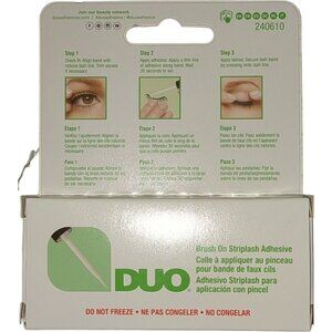 DUO's Duo Brush On Striplash Adhesive offers a secure, hypoallergenic hold with a white tone finish. Infused with vitamins for added lash care. Standard size.