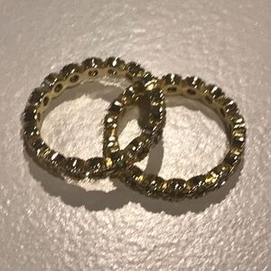 2 ETERNITY RINGS STACK SIMULATED DIAMOND COSTUME CZ GOLD TONE