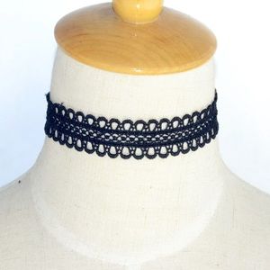 Simple & funky black lace choker. Also available in white in another listing. Approx. 10.5" long + Approx. 2.5" adjustable chain + Approx 1" width. Price firm unless bundled.