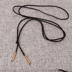 Sexy & on trend soft faux suede wrap Choker. Black with faux gold tips. Full length is approx 59". Can be tied many different ways or left open.