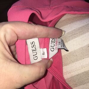 Worn twice and tunic is fresh from dry cleaners, the complimentary undershirt is cotton feeling. Both are washable. Super cute fun orange shade to brighten anyone’s day! Don’t guarantee perfection at a low price to sell but I’ve not noticed anything either.