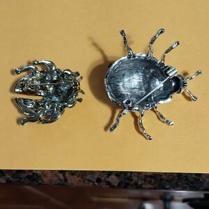 These two fabulous insects will certainly get noticed on your outfits. The lady bug will bring you good luck! The beetle will bring smiles. All stones are in place and everything is in perfect condition. There are no tags. They look like the other famous brand.