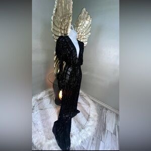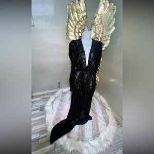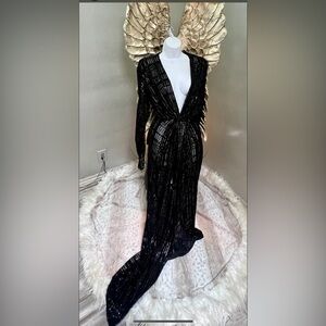 $2K ALEXANDRE VAUTHIER Lamé Rib Jersey Maxi Dress V Neck Gown, 42,12