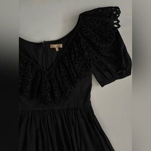 $2K Michael Kors Collection COTTON POPLIN PUFF-SLEEVE EYELET DRESS IN BLACK 6