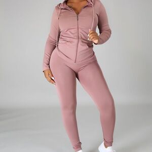 Maintaining an active lifestyle is a must but it's always better to do it in style. This solid active wear set composed of a zipped up hoodie with pockets and stretchy quality fitted legging tights will do just that.