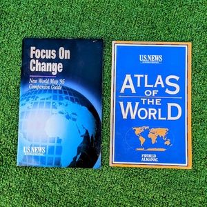 (2)Lot U.S.News Atlas World Almanac+New World Map 1995 Companion Guide Booklets