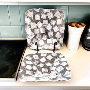 2 Mikasa Clear Glass Plates Side Frosted Square Design Geometric Salad Snack