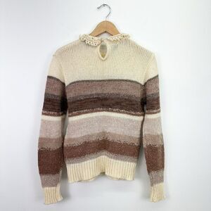 2OANS Knits by Mariea Kim Women’s Neutral Crochet Peter Pan Collar Sweater