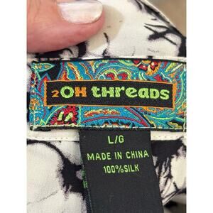 2OH Old Hippies black/cream silk buttondown top, artistic, edgy, minimalist