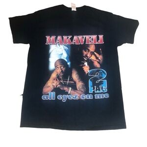2PAC (2) graphic black t-shirts. Poetic Justice and Makaveli all eyes on me. M