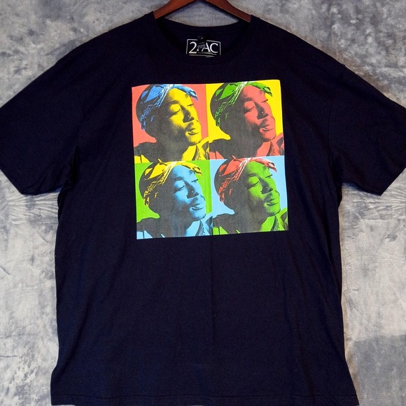 2PAC Shirt Mens 2XL Black Pop Art Quad Portrait Graphic Rap Hip Hop 2017 Tee
