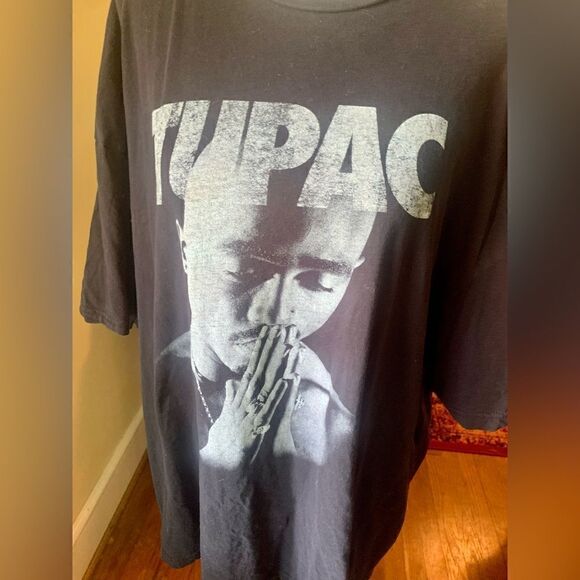 Tupac black short sleeve tee. Clorox stain on the back see photo. Size XXL. Unisex