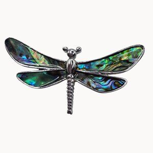 • (1) Green/Blue Abalone Silver Tone Metal Dragonfly Brooch, Unsigned