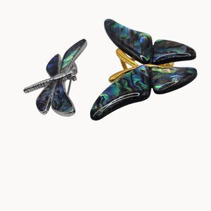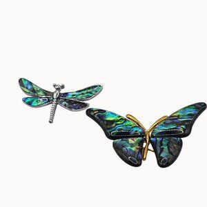 2PC Brooch Green/Blue Abalone Butterfly Dragonfly Whimsy Fairy Cottage Spring