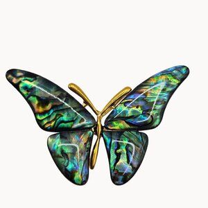 • (1) Green/Blue Abalone Gold Tone Metal Butterfly Brooch, Unsigned