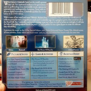 Brand New with Tags Disney's Presents Cinderella "PLATINUM EDITION" SET!NEVER OPENED OR USED BOTH ITEMS IN ORIGINAL PACKAGING.2 DISC SPECIAL COMES WITH LIMITED EDITION ULTIMATE PRINCESS CELEBRATION PRINCESS KEY ORNAMENT.BOTH RARE AND HARD TO FIND.PRICE IS FIRM UNLESS REASONABLE.