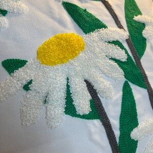 Brighten up your home decor with this delightful, embroidered daisy pillowcase. Featuring a charming pattern of white daisies with yellow centers and green leaves on a crisp white background, this pillowcase brings a fresh and vibrant look to any room. The intricate embroidery adds a unique and stylish touch.