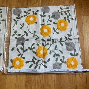 Enhance your home decor with this elegant, embroidered floral vine pillowcase. Featuring a beautiful pattern of yellow and gray flowers with green vines and leaves on a crisp white background, this pillowcase adds a touch of sophistication and natural beauty to any room. The detailed embroidery provides texture and charm to the design.