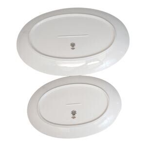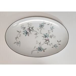2PC Noritake LORENE 16" & 12" Oval Platter 5764 Blue Gray Floral Silver Trim