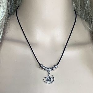 🍒 2PC PENTACLE STAR NECKLACE PENDANT EARRINGS SET WITCH BUNDLE BEADS LEATHER