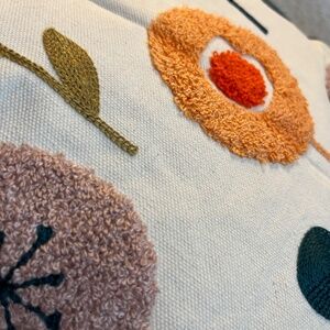 Infuse your home with a playful touch using this charming, embroidered garden pillowcase. Featuring a delightful pattern of various flowers in shades of orange, yellow, pink, and red with green leaves on a soft beige background, this pillowcase adds a whimsical and colorful accent to any room. The intricate embroidery enhances the texture and detail of the design.