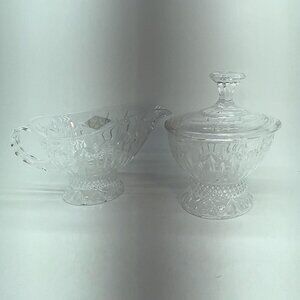 2 Piece Set Shannon Crystal OLIMPIA Pattern "Designs Of Ireland" Creamer And Sugar Bowl With Lid. Made In Slovakia.