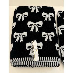 2PC Simple Home Black White Bows Bath Hand Towel Set Coquette Decor