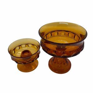 2PC Vintage Amber Indiana Thumbprint Carnival Glass Crown Compote Candy DishBrand Indiana
