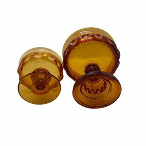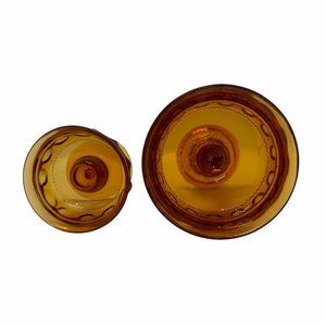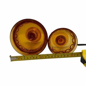 2PC Vintage Amber Indiana Thumbprint Carnival Glass Crown Compote Candy Dish